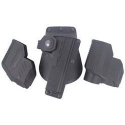 EMC (Paddle) kabura taktyczna Fobus EM prawa. Do broni z oświetleniem taktycznym, laserowym wskaźnikiem celu, zbijakiem do szyb. Do większości pistoletów typu 1911 5": Colt, Kimber, Springfield oraz Browning Hi-Power 5" z szyną montażową.