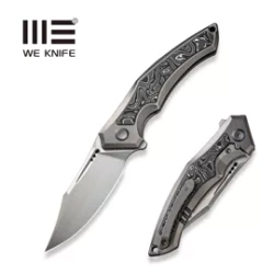 Fractal Grey Titanium / Carbon Fiber, Stonewashed / Satin, a compact EDC folding knife with a distinctive geometric design. Mixed grind on the blade with S35VN, titanium grips with carbon fiber inserts. Perfection of workmanship!