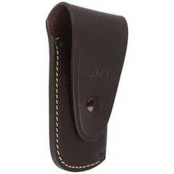 650130 elegant leather knife case in dark brown color with embossed Herbertz Solingen manufacturer's logo. Fastened with one of the two latches allows you to move folders with a handle length of 110 mm and 130 mm.