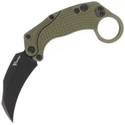 EXO-K Gravity Karambit Green Aluminum, Black PVD folding knife from legendary Reate Knives manufactory. A show off of the company's engineering in design, a gravity-opening carambit with button lock. Aluminum Handle, N690 steel. Training blade included!