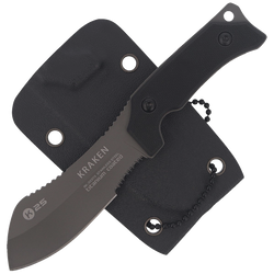 RK-32373 Kraken Neck Knife Black G10, Titanium - Tactical neck knife modeled after the legendary Nessmuk, with full tang construction, titanium-coated 7Cr17Mov steel blade, G10 composite handle and Kydex sheath with chain.