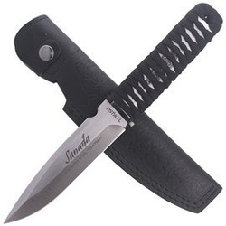 Sanada Nylon Cord Wrap, Satin is a large fixed blade knife modeled after Far Eastern white weapon designs. A sturdy stainless steel blade, comfortable wrap for a secure grip, and all at a great price. A hit!