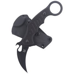 A modern karambit with incredible performance. The fixed blade version of the popular FX-599 folder shows how karambit knives have evolved. Hawkbill blade in N690Co steel with Idroglider Black coating, enlarged Back Ring, compact scabbard
