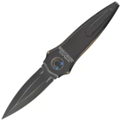 Warlock-X Convergence Black Aluminum, Black Cerakote, a large folding knife with an unusual gravity opening method. Aluminum grips, blade made of proven CPM S35VN steel. Made with pride by American craftsmen!