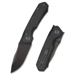 Rhino Black Micarta, Black Titanium handy compact EDC folding knife. Blade drop point made of 14C28N stainless steel, fast Front Flipper blade for opening and Micarta Handle. Excellent value for money! Bestseller!
