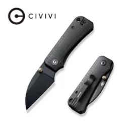 Baby Banter Wharncliffe Black Burlap Micarta, Black the latest edition of the popular EDC folding knife designed by Ben Petersen. It uses a highly functional Wharncliffe blade made of Nitro-V steel, durable Micarta grips. A great companion!