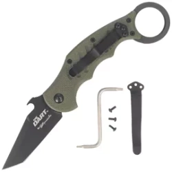 The Dart Karambit OD Green G10, Black Idroglider, designed by Doug Marcay, instructor of the South Asian martial art Kali. Tanto blade made of N690Co steel with Idroglider Black coating, Emerson hook.