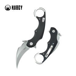 Mini Wrath Black G10, Blackwashed smaller version of MUZI Design's karambit. Curved blade made of Sandvik 14C26N steel, contoured G10 composite handle. Three ways of opening, flipper, thumb hole and opening against the edge of the pocket.