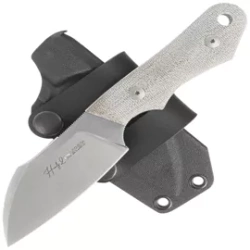 Handy 2 Natural Canvas Micarta, Stonewashed versatile and perfectly balanced compact fixed blade knife designed by Fabrizio Silvestrelli. Superior Böhler M390 steel. Targeted at bushcraft, survival and hunting enthusiasts.