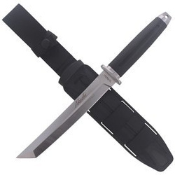 Akechi Black Rubber, Satin is a large fixed blade knife modeled after Far Eastern white weapon designs. Solid stainless steel blade, comfortable handle for a secure grip, and all at a great price. A hit!