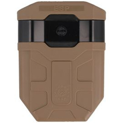 A polymer pouch of an open type for a two-row magazine cal. 9mm / .40 / .45 with a UBC-03 type belt attachment in the black color of the Czech company ESP.