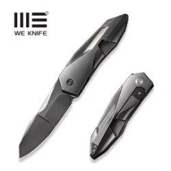 Hyperactive Black / Flamed Titanium, Black Stonewashed Bevels/Black Brushed, full-sized (full-size) E.D.C. folding knife. Tucked into a compact handle, the nearly 4-inch blade allows for easy pocket carry. Striking WeKnife folder in Vanax tool steel.