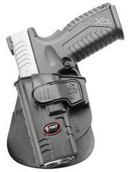 XDCH RT (Roto), kabura Fobus typ CH, prawa. Profesjonalna linia CH stawia na bezpieczeństwo. Mechanizm Trigger Guard Locking System rozwiązuje problem bezpiecznego przenoszenia broni. Springfield: Full Size 9mm XD i XDM oraz Compact 9mm. Tisas: Zigana PX9