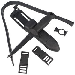 TORPEDO11 BE BLACK, doskonały nóż nurkowy (back-up) firmy MAC. Nieodzowny element wyposażenia każdej wyprawy nurkowej. Głownia dagger ze stali nierdzewnej W 1.4116 o dużej odporności na korozję, pokryta nierefleksyjną powłoką IDROGLIDER GOLD® Black.