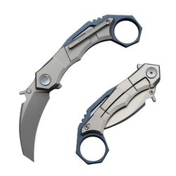 Tayra Blue Titanium, Hand Rubbed Satin, nóż składany typu karambit z rękojeścią z tytanu, głownią ze stali M390 i blokadą frame lock. Wyrafinowana konstrukcja dla użytkowników poszukujących funkcjonalności, trwałości i agresywnej estetyki.