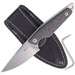 Mikro 1 Carbon Fiber, ultralekki 40 g nóż ze stałą klingą. Charakteryzuje się mocnym, krótkim ostrzem z zaokrągloną krawędzią tnącą, która jest niezwykle wszechstronna oraz pochwą przystosowaną do noszenia w kieszeni lub na szyi. Projekt Jespera Voxnaesa.