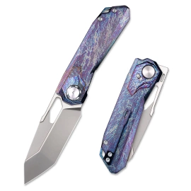 RT-Meteor RTPT-E Titanium/Shredded Carbon Fiber, Pearlescent folder EDC dla wymagających użytkowników. Najlepsze materiały, głownia ze stali Bohler M390, rękojeść z tytanu i włókna węglowego. Innowacyjne zastosowanie dwóch blokad, frame i button locka.