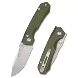 Rhino Military Green Micarta, Stonewashed podręczny, kompaktowy nóż składany EDC. Głownia drop point ze stali nierdzewnej 14C28N, szybka płetwa Front Flippera do otwierania oraz rękojeść z Micarty. Znakomity stosunek jakości do ceny! Bestseller!