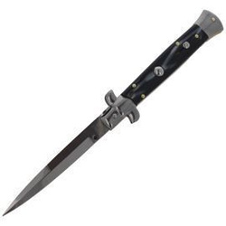 Frank Beltrame Stiletto Dagger Black 23cm. Ręcznie składany tradycyjny włoski nóż sprężynowy otwarcie ostrza musi odbyć w ciągu kilku setnych sekundy (cecha noży Stiletto). Nóż wydaję charakterystyczny klik odróżniający go od pozostałych noży sprężynowych