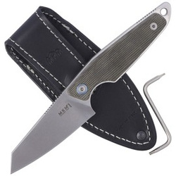 Makro 2 Green Micarta Canvas lekki 66g nóż ze stałą klingą. Charakteryzuje się mocnym ostrzem z zaokrągloną krawędzią tnącą która jest niezwykle wszechstronna i pochwą z magnetycznym zapięciem przystosowaną do noszenia w kieszeni. Projekt Jespera Voxnaesa