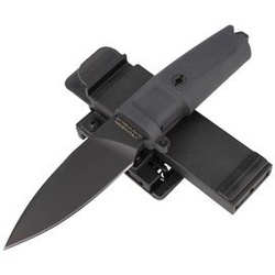 N.K.1 DW neck knife o imponującej skuteczności cięć. Łukowate podcięcie grzbietu klingi pod kciuk lub palec wskazujący zgodnie ze stylem walki. Pochwa do zawieszania na szyi, opcjonalnie na kamizelkę lub pas, co umożliwia używanie noża jako clinch pick’a.
