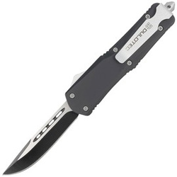 Dulotec OTF Drop Point Black Aluminium, Two-Tone nóż automatyczny OTF (Out The Front) pracujący w trybie D/A (Double Action) czyli za pomocą suwaka wysuwamy i chowamy ostrze. Mocna budowa, niezawodność działania oraz rozsądna cena. Bestseller!