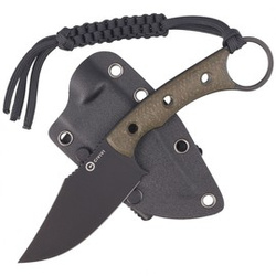 Midwatch Black Micarta, Black Stonewashed, nieduży nóż EDC o stałym ostrzu. Na wskroś utylitarny kształt ostrza ze stali N690, rękojeść z jutowej micarty, Pochwa z kydexu, wyposażona w T-Clip umożliwiający mocowanie do pasa, ozdobny wisior z paracordu.
