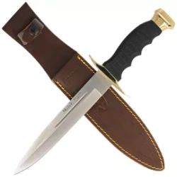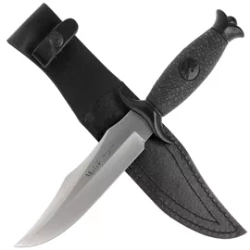 95-220 Black Rubber, Satin duży nóż survivalowy ze stali nierdzewnej 420H. Okładziny rękojeści z elastycznego moletowanego elastomeru gwarantują wygodny i pewny chwyt. Ręcznie szyta skórzana pochwa. Tradycja i nowoczesność w jednym narzędziu!