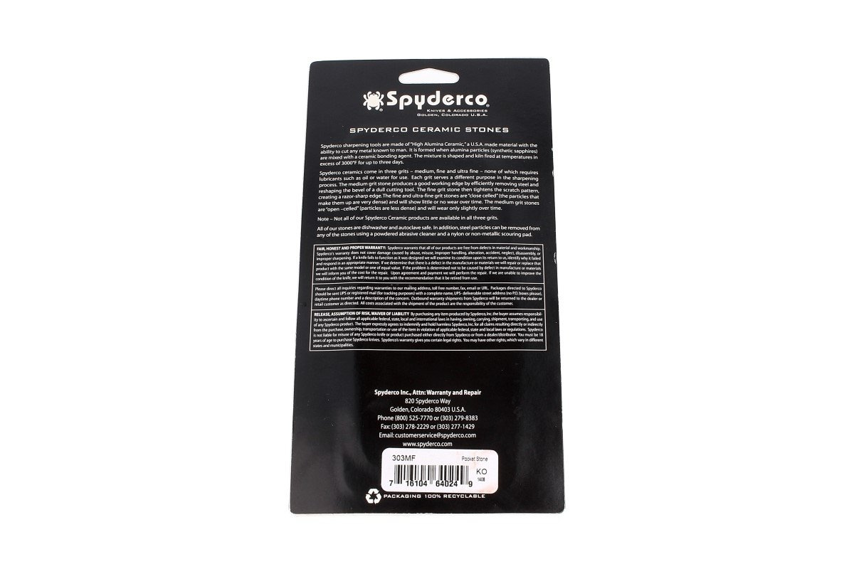 - 303MF, Pocket Stone Double Stuff made of aluminum oxide 2-sided ceramic sharpener. The combination of 2 Spyderco stones: medium-grained 303M gradation: Medium Gradient 600 for pre-sharpening and fine-grained 303F gradation: Fine 1800 for polishing.