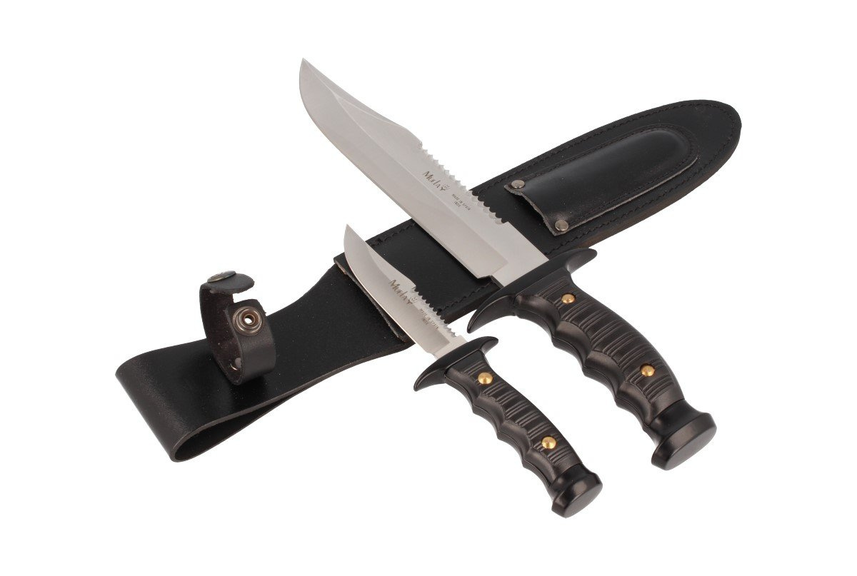 7221-P set of two knives (Kangaroo) - main knife (7221) with blade length 220 mm and auxiliary knife (7101 MT-Bowie) with 100 mm blade. They work well during survival, hunting and household chores - as everyday knives. Manufactured by the Spanish company Muela with over 50 years of experience in knife production