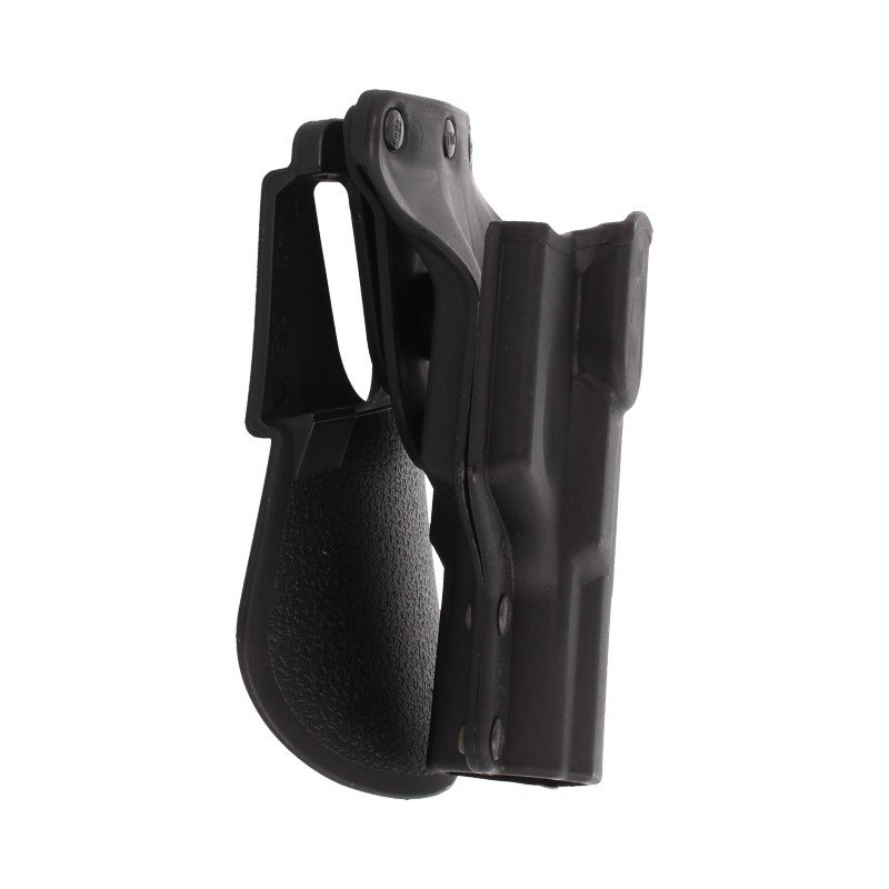 P (Paddle) - belt fin. Designed to be as close as possible to the user's body it is perfectly suited to work under the "cover", when discretion is an important element. Without adjusting the angle of the holster.