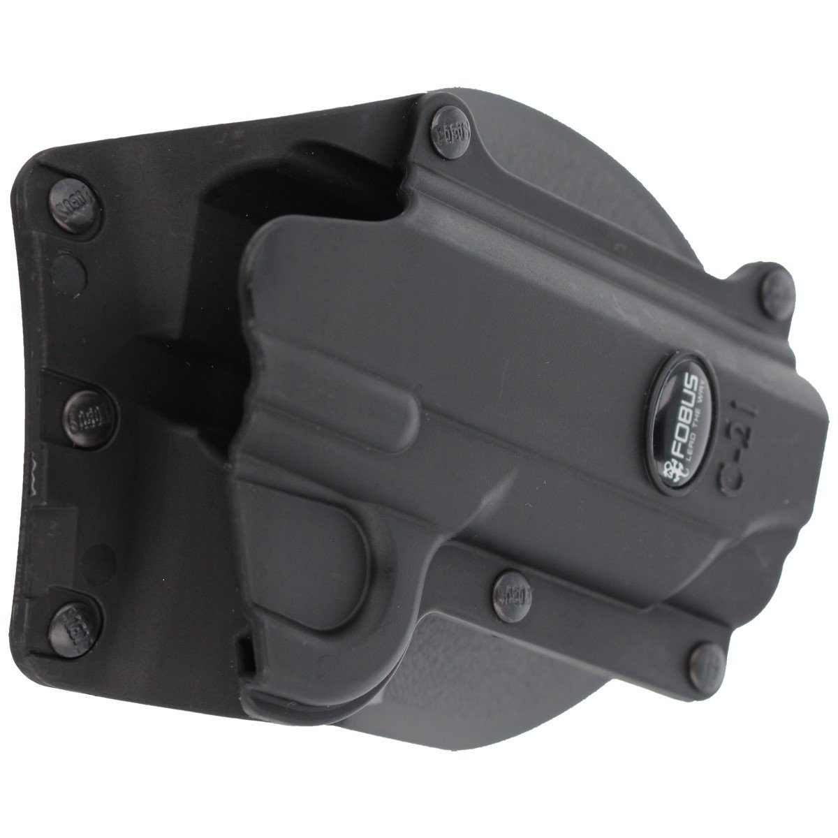 Open holster Fobus, type Standard. For Colt pistols: .45 Gov / 1911 (without mounting rail). Browning: Hi-Power Mark III 4 & 5mm. FN: High Power, HN Forty-Nine. Kahr: P9, T9, K9, TP9, T40, K40, MK40. Kimber: 1911 Style, 4 & 5 inch (without mounting rail). Sasilmaz: Klinic 2000 Light. Smith & Wesson: 945. RX18 Polymer injection molded from scratch-resistant, impact-resistant and extreme temperatures high-density plastic.
