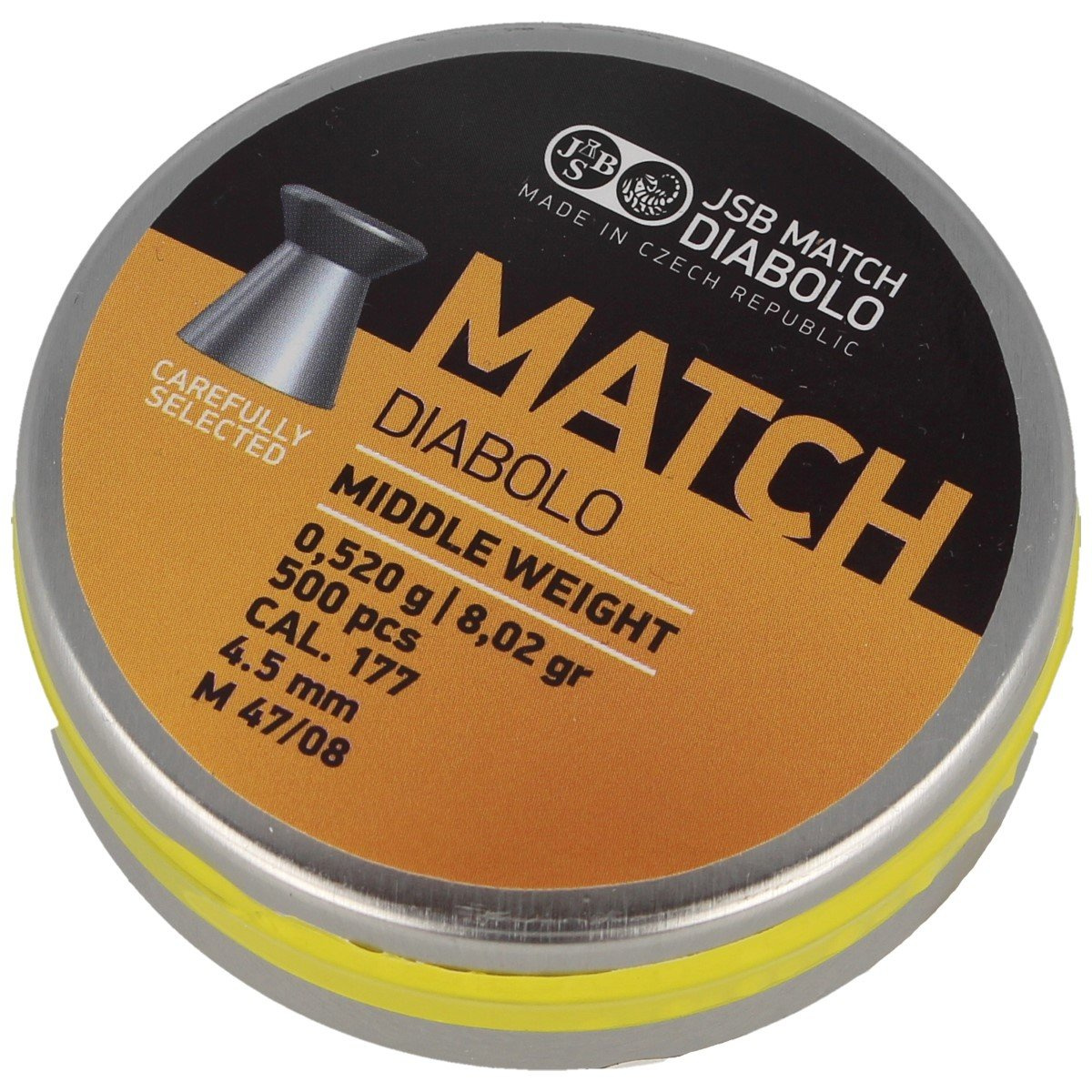 - Match Middle Weight 0.520 g medium‑weight target pellet with flat head in 4.50mm. Thanks to its carefully selected weight, it is suitable for both rifles and pistols. Perfectly flat head produces clean, smooth, non‑torn holes in the target. Pack of 500pcs