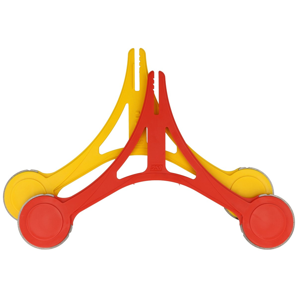 A simple principle of operation for the undoubted advantage of the MAX SHOT 250. The goal was constructed in such a way that one of the arms was always up. After accurately hitting the upper arm shield (alternating yellow and red each with 60 mm diameter), the solar energy tilts in order to increase its shooting distance by about 15 cm each time. The next arm with the shield will be ready to hit.