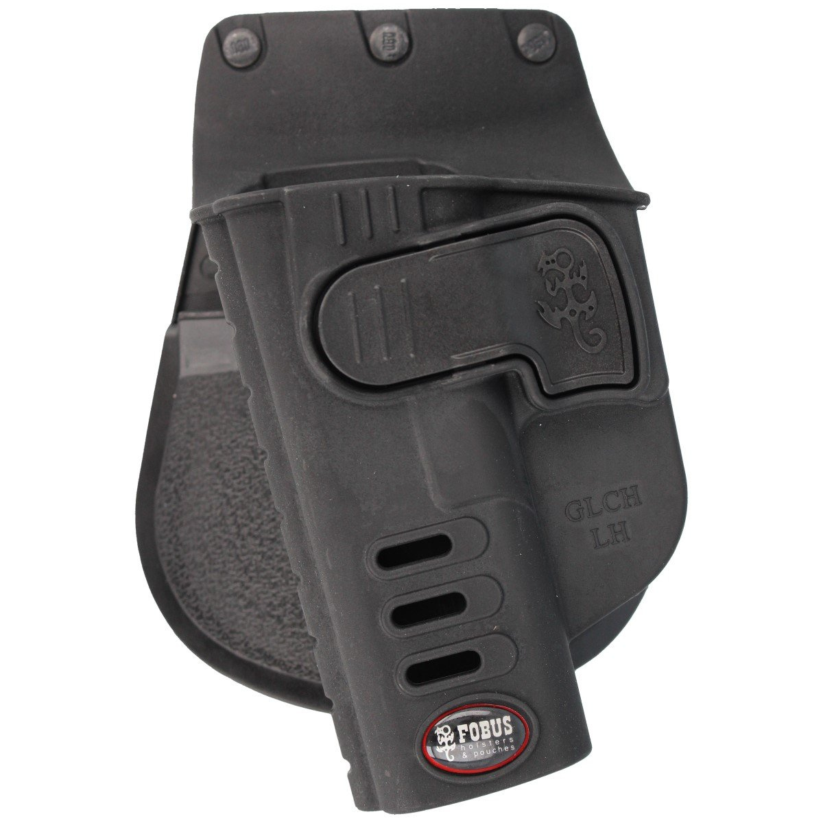 GLCH LH RT - Outside the Waist Band (OWB) holster from the CH series by the Israeli company Fobus. CH Series is a line of holsters that focuses on safety. Thanks to its low profile, the holster allows for easy concealment of the firearm, enhancing carry comfort. Made using injection molding from scratch-resistant, impact-resistant, and temperature-resistant nylon, a high-density plastic material. Left-handed version. Ideal for those seeking a reliable, comfortable, and secure holster for everyday carry.