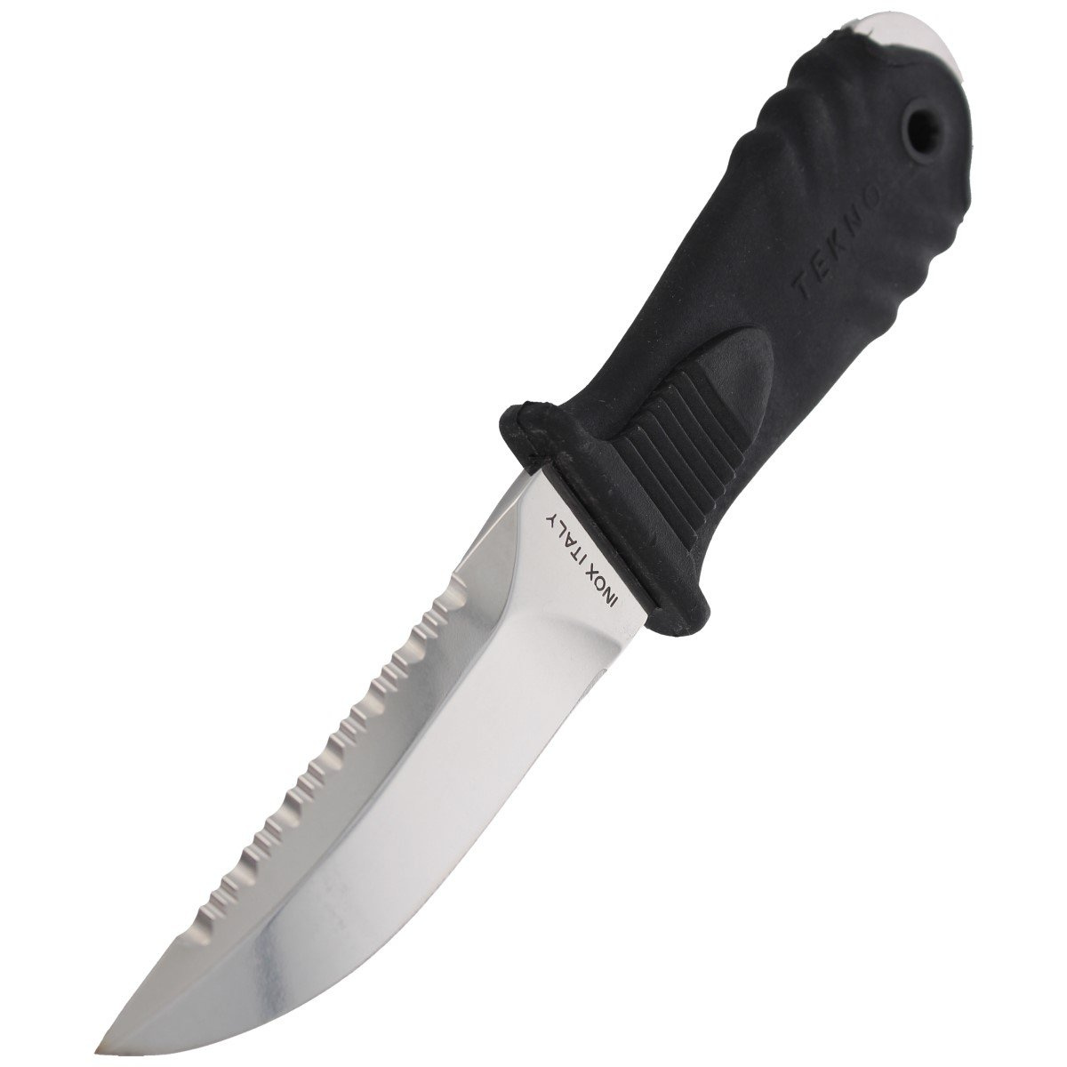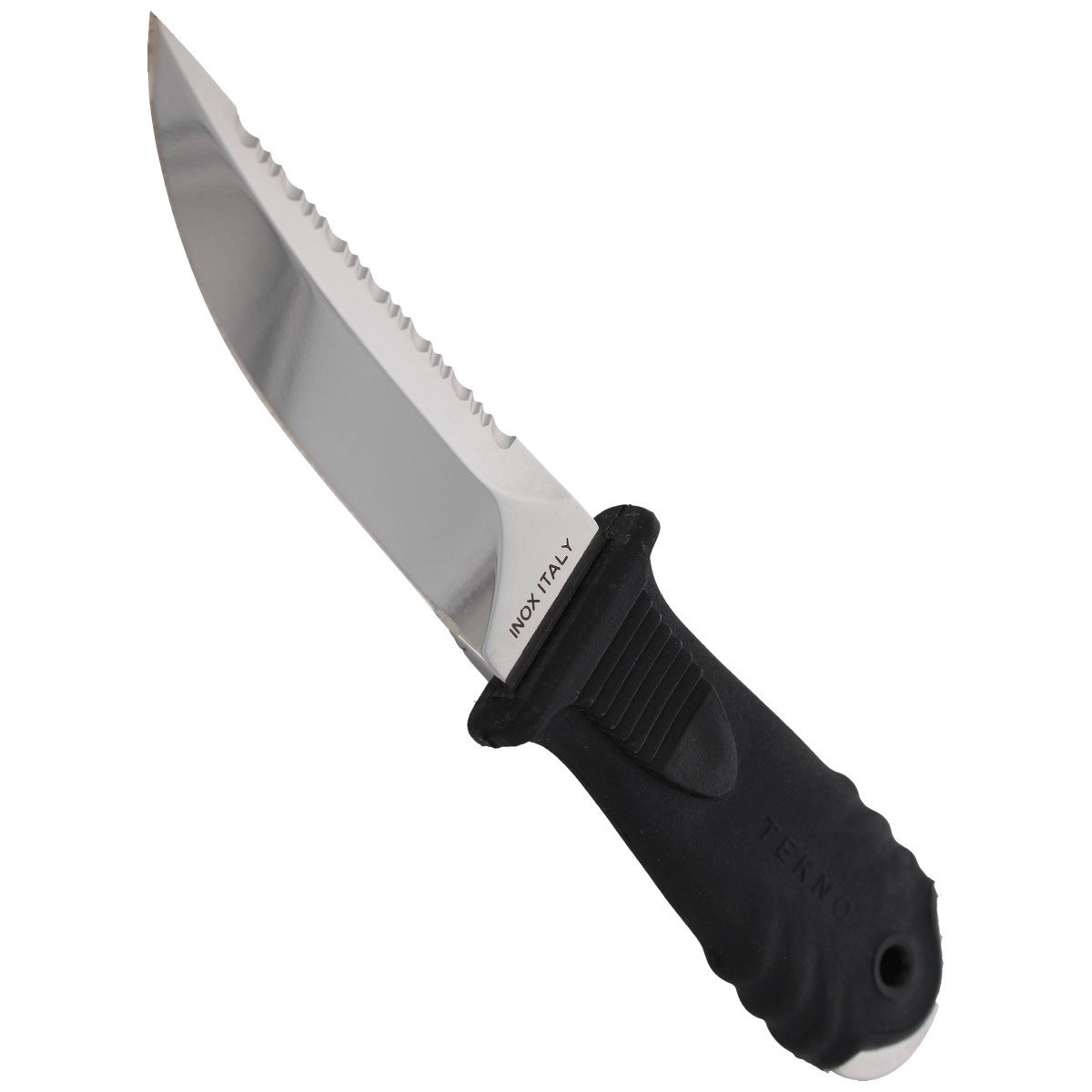 - TEKNO BLACK compact back-up dive knife with MAC full tang design. It lies perfectly in the hand and is suitable for use during diving trips and on land. Blade made of polished stainless steel W 1.4116 with high corrosion resistance.