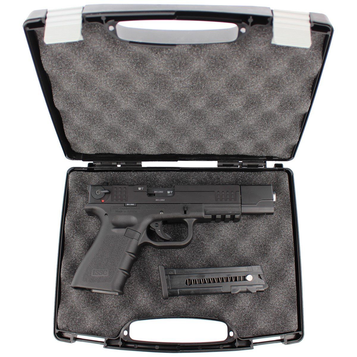 - 111002 ISSC M22 TGT GEN 2 Black side-firing pistol for practical or sports training with compenstor-loader. Adjustable targeting instruments, 10-round magazine, SA trigger mechanism. Skeleton design similar to the Glock pistol...