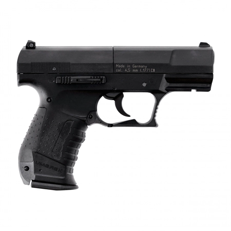 • Walther CP-99 Sport - a faithful replica of the P-99 with a rifled barrel and CO₂ power. Fires 4.5 mm diabolo pellets from an 8-shot rotary magazine – perfect for training and recreational shooting.
