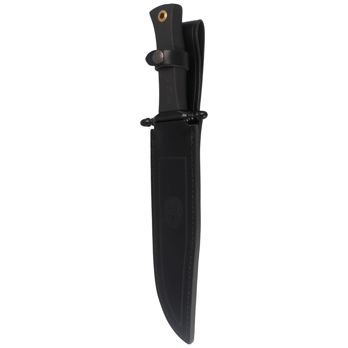 Case - in black color. Fastened with a snap, it allows safe carrying of the knife. Made of natural leather with embossed Muela logo. The sheath was sewn on the edges with a decorative thread. Fastening to a belt or gear allows you to carry the knife in a vertical position.