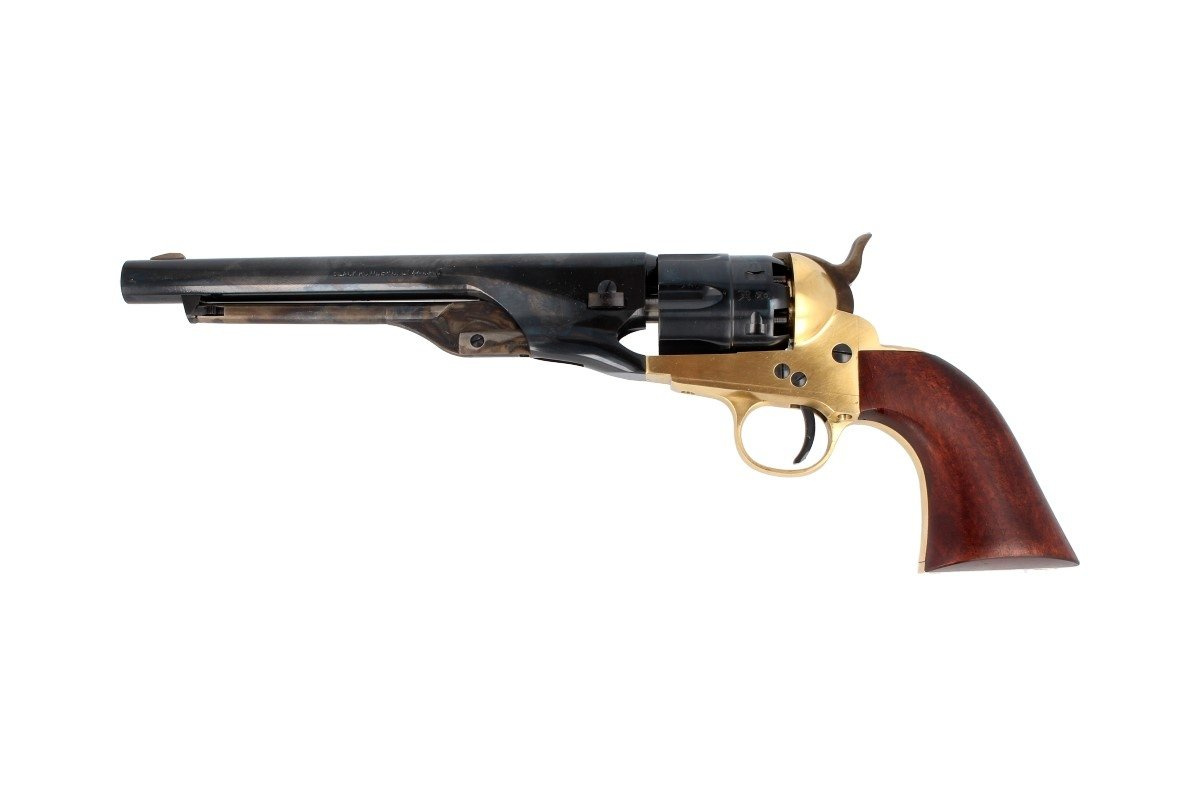 - Colt 1862 Police Pony Express OTT 6-shot, cap-loaded black-pistol revolver in cal. 44 breech-loading with brass frame and half-cannelled drum. Trigger guard (bail), polished brass tang fittings. Round barrel 5.375"....