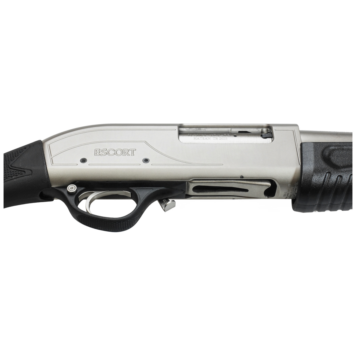• ESCORT MarineGuard tactical repeating smoothbore pump action rifle (shotgun). Finished with a white nickel coating for moisture protection, designed for aquatic operations. Fixed flask included with additional pistol grip