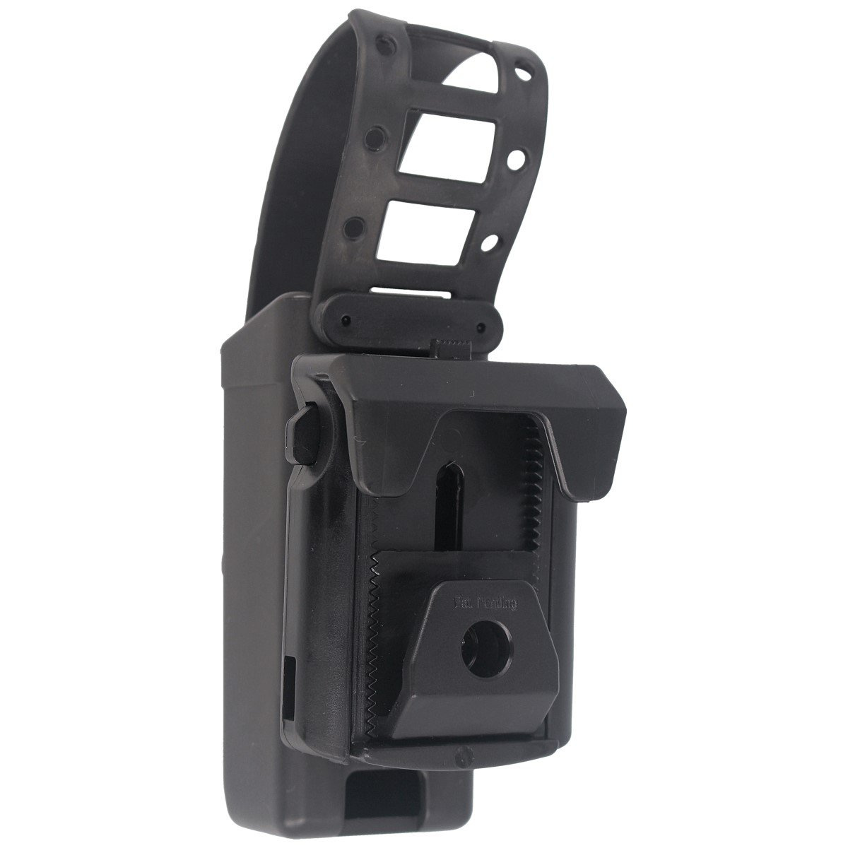UBC-01 - belt / crimp fastening in the range 50 - 93 mm (QuickMod type) also suitable for police belts 60 mm (duty). The type of handle allows very fast attachment / removal from the belt. This operation can be done with one hand, there is no need to unfasten the belt. UBC-01 enables full rotation (by 360 degrees) of pinned equipment - stepless angle adjustment of the equipment being transferred (locked in one of 16 defined positions).