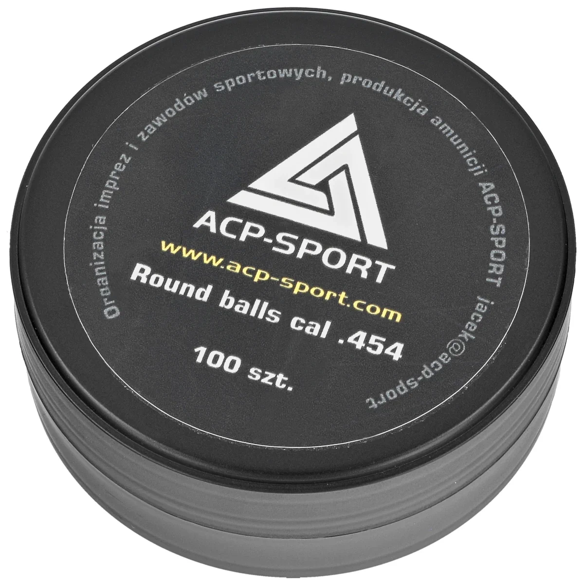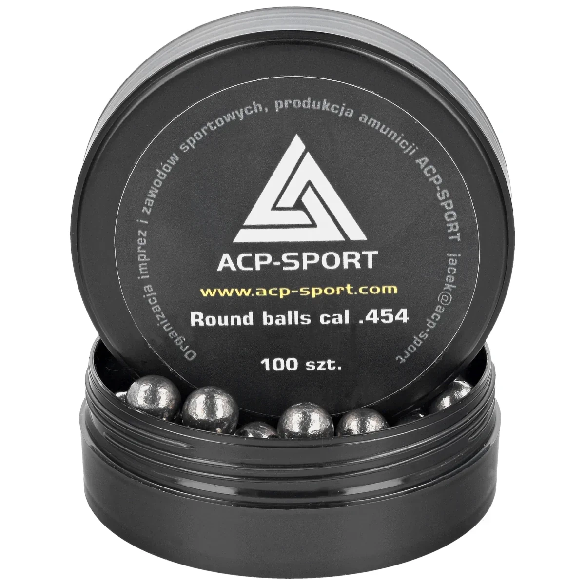 Polerowane nadkalibrowe kule ołowiane (139 gr) firmy ACP-Sport w kal. 454 (11.53 mm) do broni czarnoprochowej. Wykonane z czystego ołowiu produkowanego bez udziału ołowionośnych materiałów wtórnych. Dzięki poddaniu kul obtaczaniu nie posiadają one nadlewek, niedolewek, szwów, innych wad spotykanych w produktach o niższej jakości. Przeznaczone do strzelania z rewolwerów m.in. Remington, Colt, pistoletów oraz karabinów czarnoprochowych w kalibrach: .44, .45. Opakowanie zawiera 100 szt.
