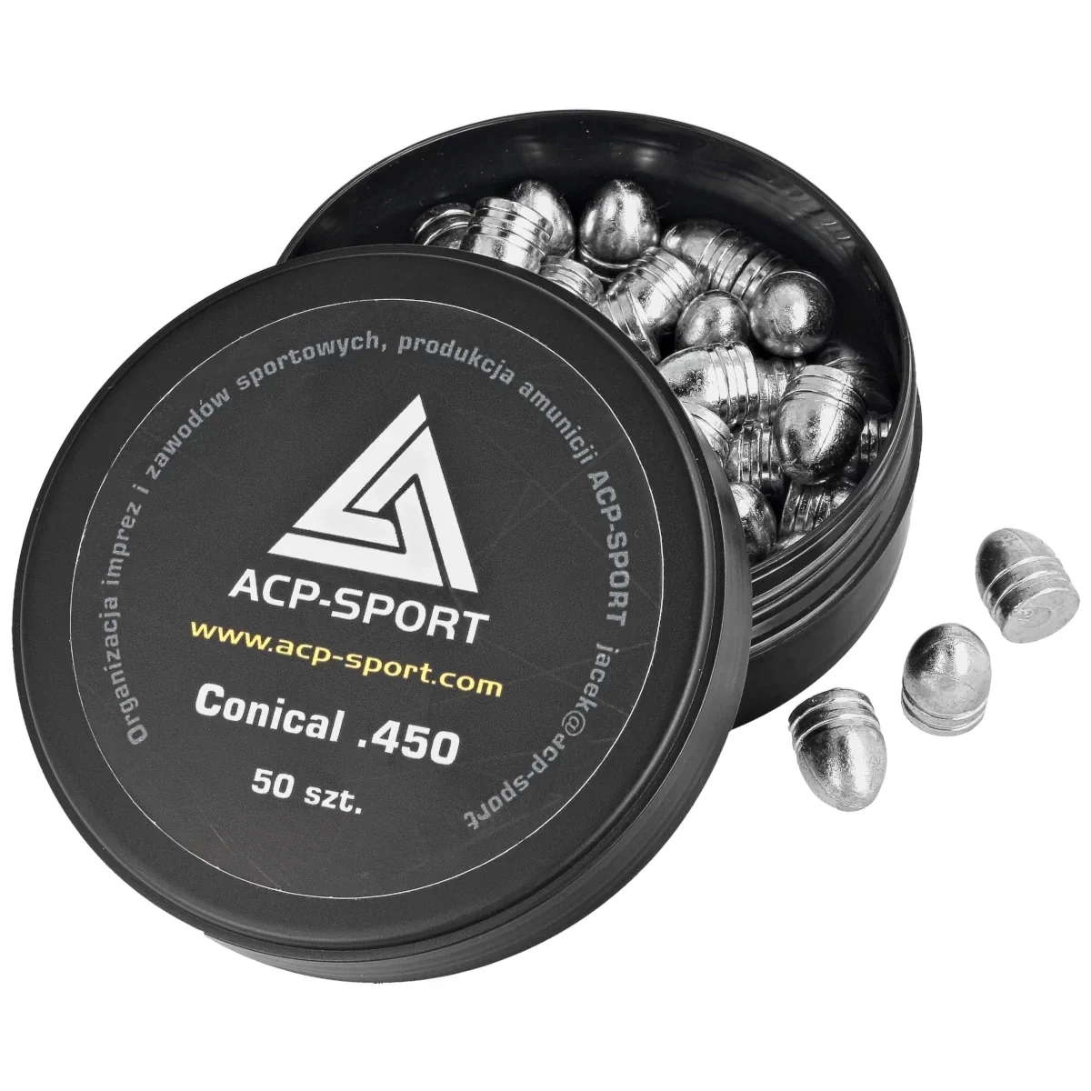 ACP-Sport Conical lead bullets (200 gr) in caliber 450 (11.46 mm) for black powder revolvers. Made of pure lead with no lead-bearing secondary materials, gaps, gaps, other defects found in lower quality products. Designed for shooting from percussion revolvers, incl. Remington, Colt, pistols and black powder rifles in caliber .44. The package contains 50 pcs.