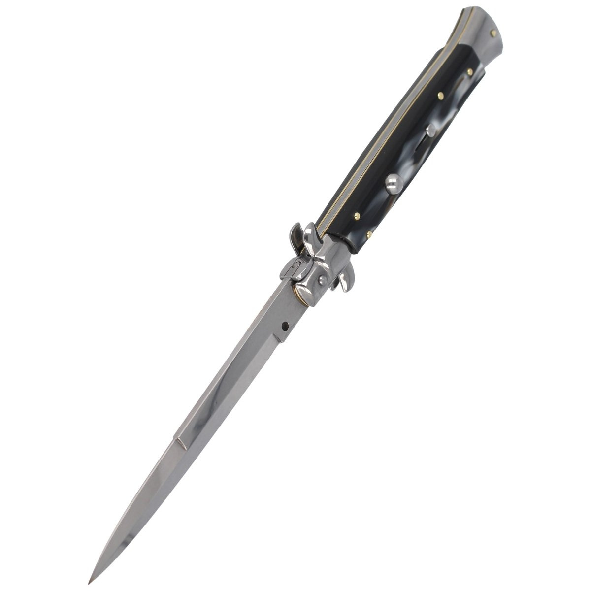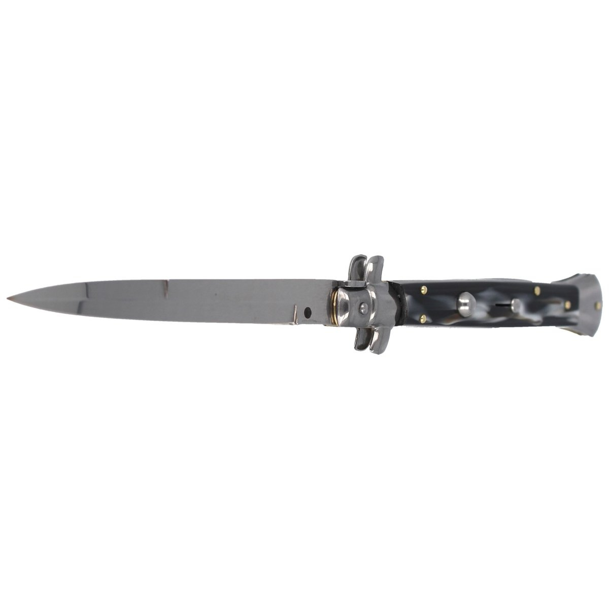 Classic Italian Stiletto Imit. Horn Bayonet 28 cm, traditional italian spring knife. Handmade according to the principles of Italian craftsmanship, the knives Frank Beltrame Stiletto have become world-famous for their extreme lightness and durability. Thanks to its characteristics, the Italian dagger is suitable for use in any environment, from hunting to camping. Robust, durable construction, strong opening blade spring, is a feature of the classic Italian frank Beltrame spring knives.