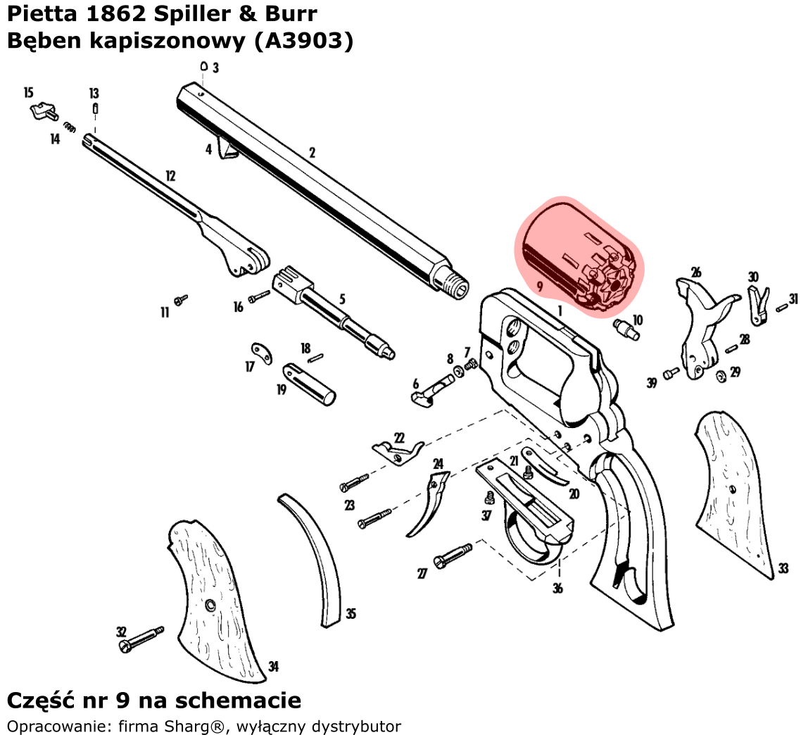 - A3903 (service) steel 6-chambered cap drum from Pietta designed for the 1862 Colt Spiller & Burr black-rifle revolver in caliber .36. Full unengraved black oxidized. Set of 6 fireplaces included...