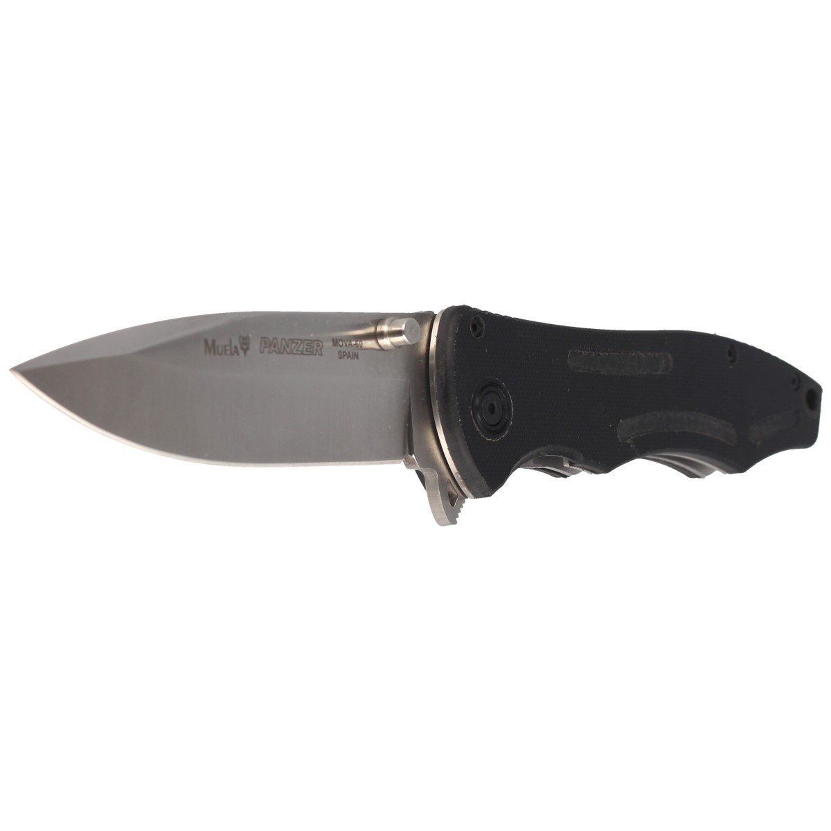 - Panzer-10 folder with steel blade MOVA-60. Balanced, durable, it will be able to handle work without any problems in all conditions. Thumb Stud and Flipper pin allow you to quickly open the knife. Black handle made of PTB reinforced with glass fiber.