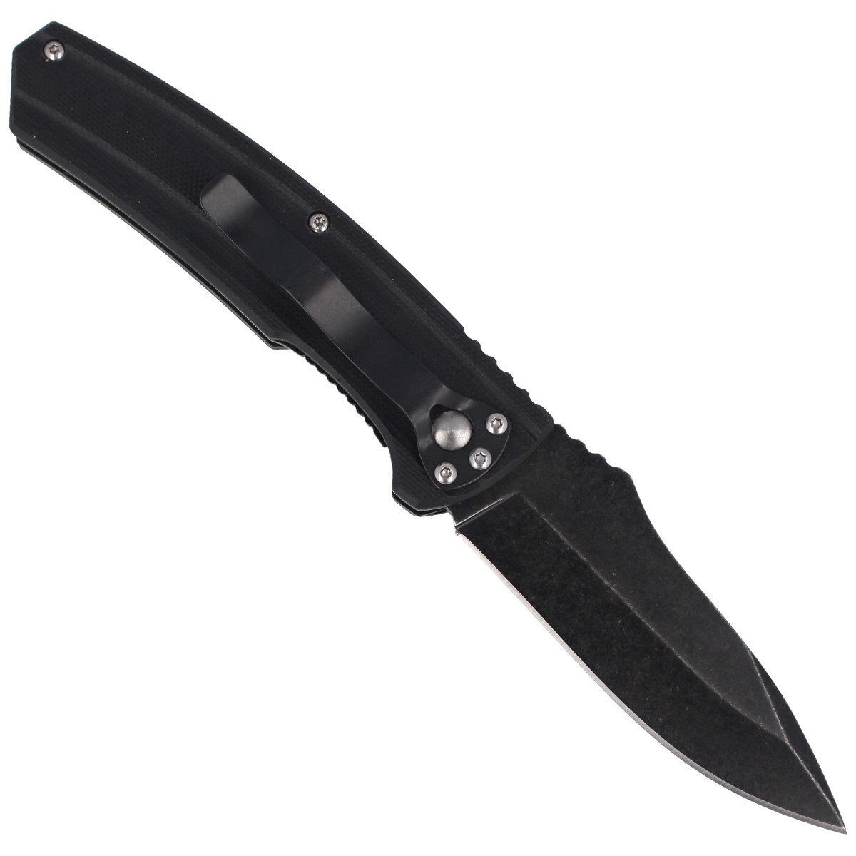 Handle - covered with textured black claddings. Made of durable G-10 material, resistant to high and low temperatures and chemicals. The solid metal clip, screwed with torx screws, allows the knife to be moved in the tip-down position. Spine Jimping corrugated incision on the back of the handle increase grip reliability, also with wet hands.