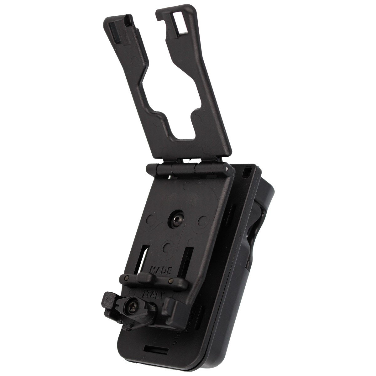Belt Loop - fastening designed for the needs of uniformed services, allows for quick attachment / detachment of the holster. A flat clip fastened to a carrying belt 30-50 mm wide, and after removing the adjustment onto a 55 mm wide belt (police belt). In order to prevent the gear from moving, e.g. while running, the mount is equipped with two adjustment screws that lock the holster in the required place on the belt. Belt Loop allows full 360-degree rotation of the attached bar, setting the angle (locking the case in one of 12 defined positions).