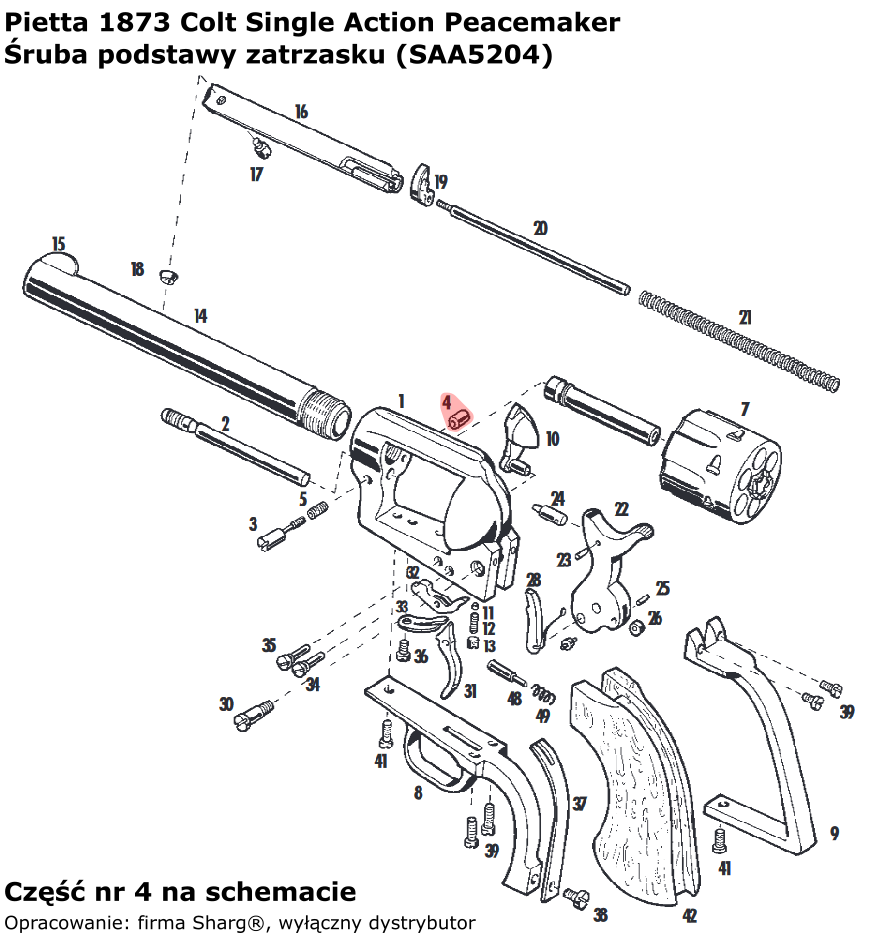 - SAA5204 (service) screw base latice from Pietta. Designed for 1873 Single Action Steel revolvers and 1873 Single Action Stainless, the most famous Samuel Colt revolvers also known as Peacemaker / Cattleman.